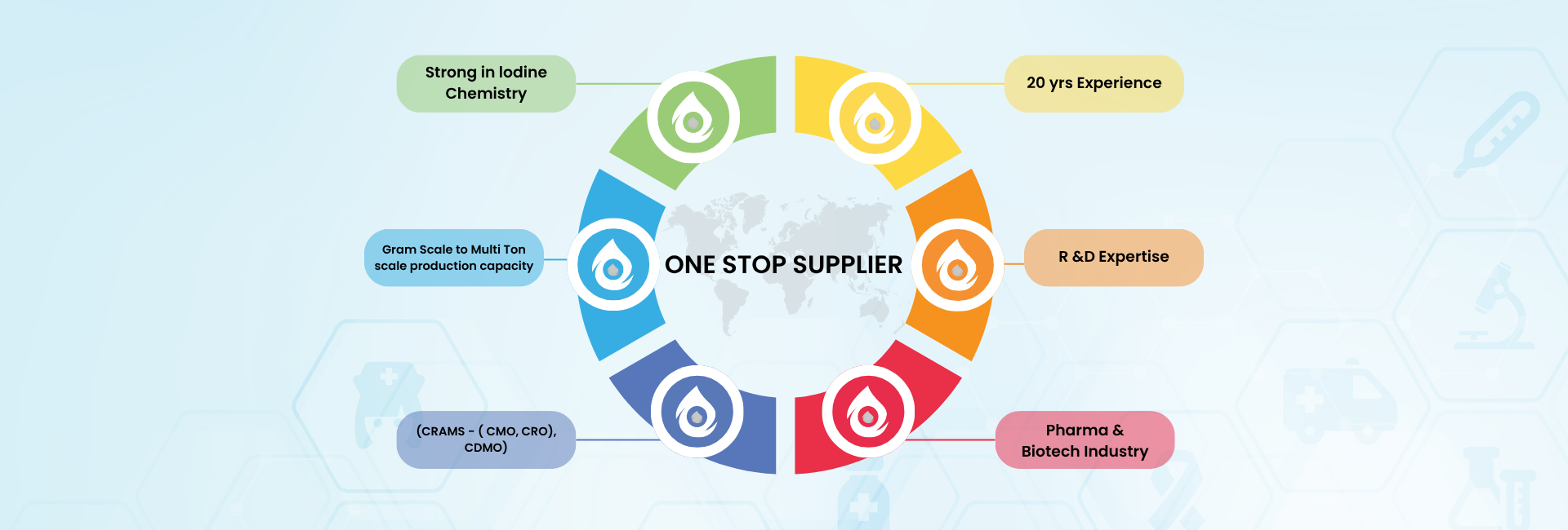To establish leadership in Contract Research & Manufacturing Services (CRAMS) and Custom Synthesis of Specialty Chemicals, catering to the healthcare and life sciences industries, including generic APIs for later life cycle requirements.